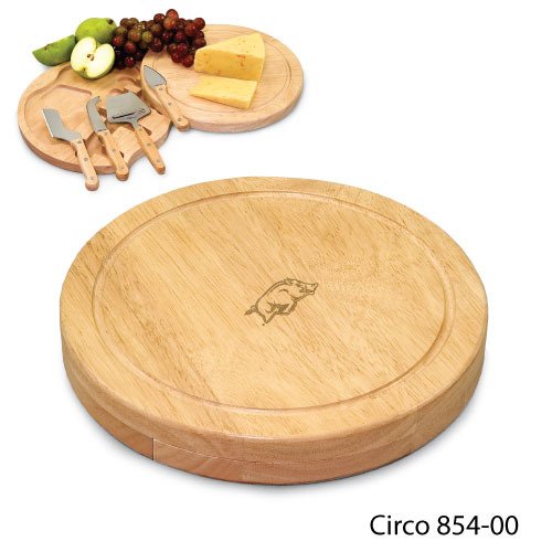Arkansas at Fayetteville Laser Engraving Circo Circular cheese board w/stainless cheese tools w/wooden handles